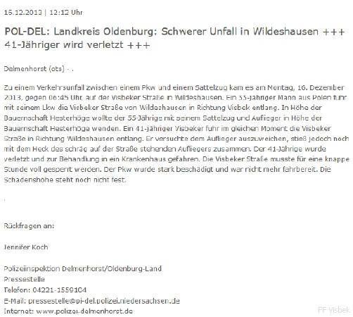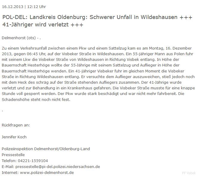 news aktuell / Polizeipresseportal vom 16.12.2013